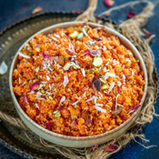 Grated carrots, ghee, milk, sugar, and a hint of cardamom come together in a tantalizing treat garnished with chopped nuts.