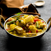 Our special tantalicious vegetarian delight features a medley of 9 veggies and fruits served in aromatic creamy gravy.